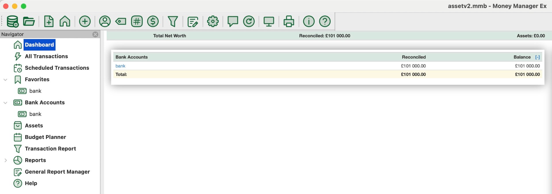 we added an asset transaction to buy with the amount of £101k. then we spent £101k and got an asset worth £101k.